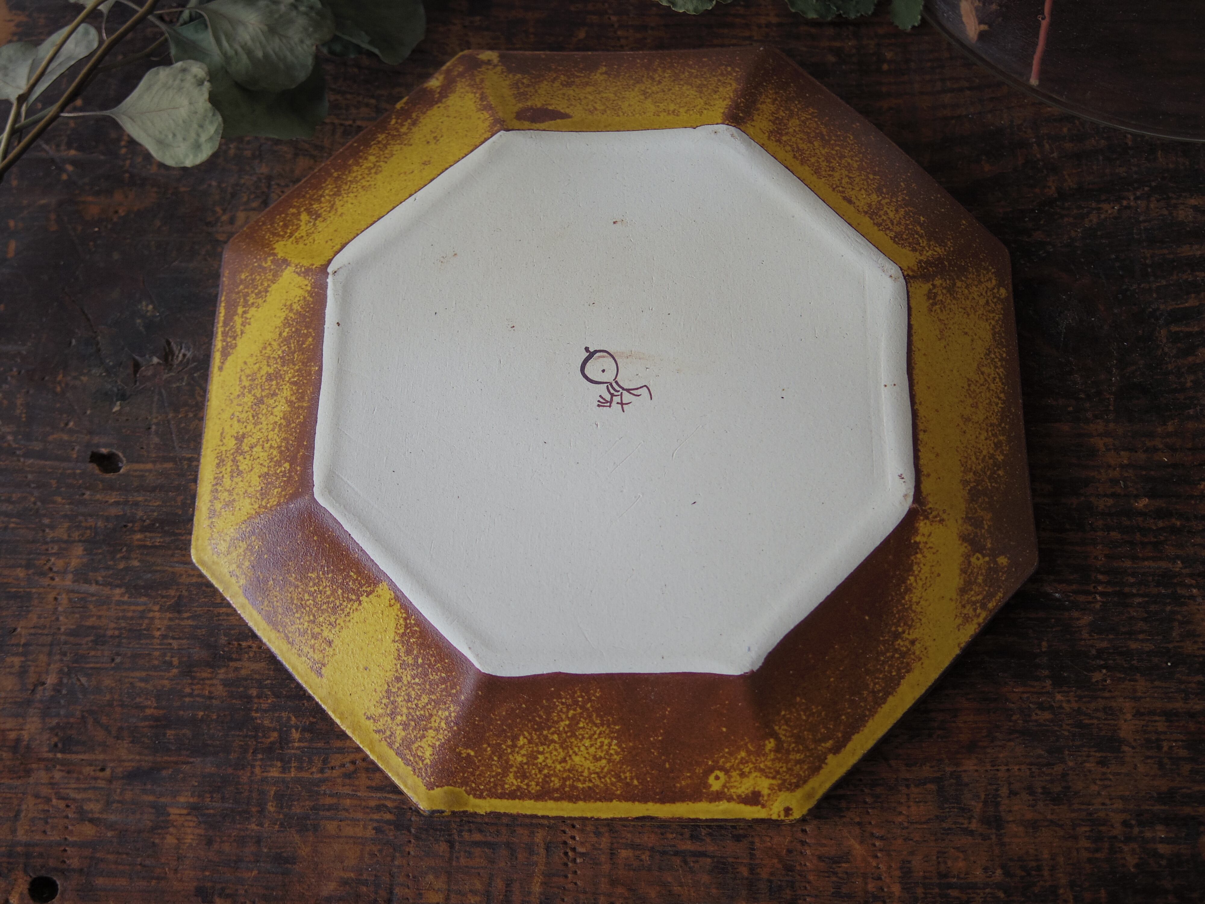 メンフクロウをモチーフにした黄瀬戸釉の八角中皿です。